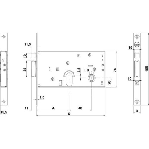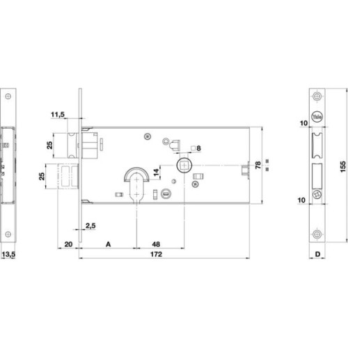 - Lunghezza totale (A): mm.80