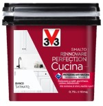 Lo Smalto Rinnovare Perfection® Cucina di V33 è la soluzione ideale per rinnovare e decorare mobili da cucina, piastrelle, elettrodomestici e superfici verticali in modo semplice e duraturo. Grazie alla tecnologia TEFLON™, offre una protezione rinforzata contro macchie, grassi, urti e detergenti, assicurando una resistenza estrema anche alle alte temperature tipiche degli ambienti cucina.